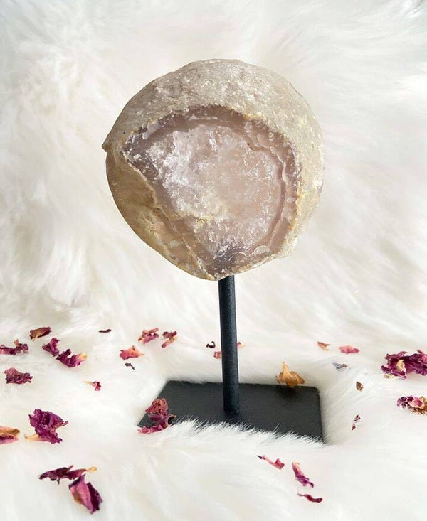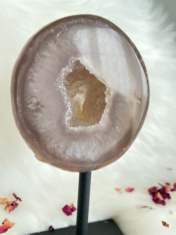 Deze pink Agaat heeft een heel mooie holte met allemaal glinsteringen !✨