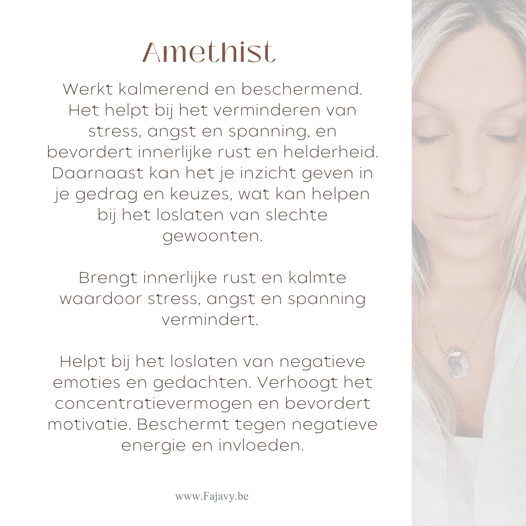 Amethist is kalmerende en helpt bij stressvermindering en spirituele groei.