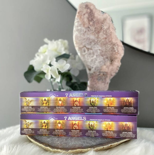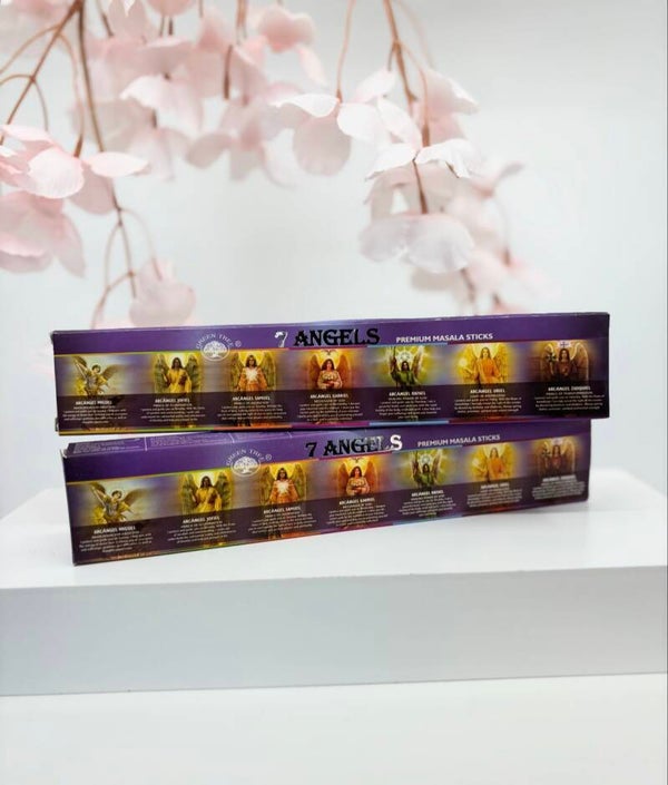 Green Tree 7 Angels verwijst naar een geurcollectie (wierook of geur‑olie) die gedachte is om spirituele bescherming, helderheid en energie op te roepen.