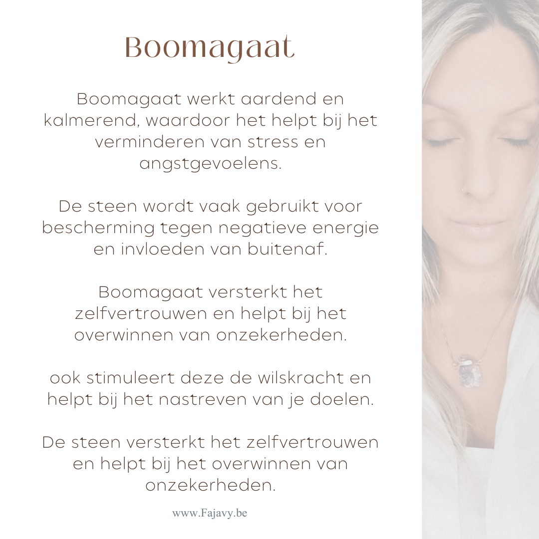 Boomagaat werkt aardend en kalmerend, waardoor het helpt bij het verminderen van stress en angstgevoelens.
