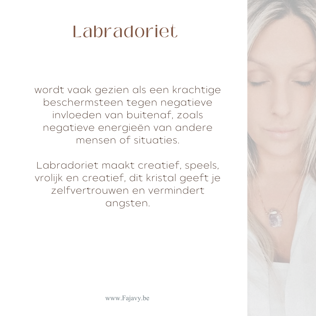 Labradoriet staat bekend om zijn beschermende en spirituele werking. Het zou je aura versterken en beschermen tegen negatieve invloeden, stress en angst verminderen, en je intuïtie vergroten