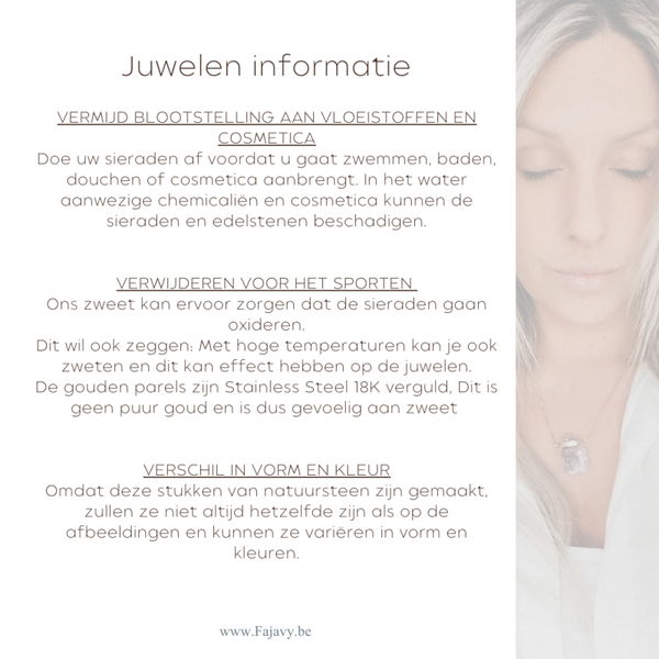 De gouden parels zijn Stainless Steel 18K verguld, Dit is geen puur goud en is dus gevoelig aan zweet
