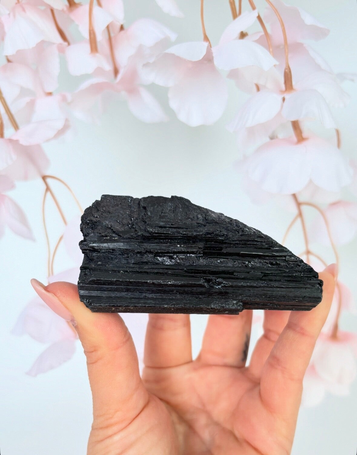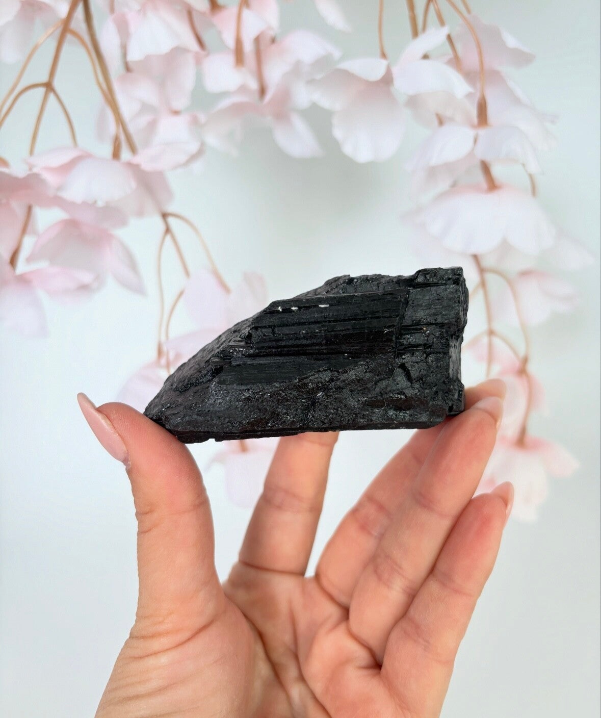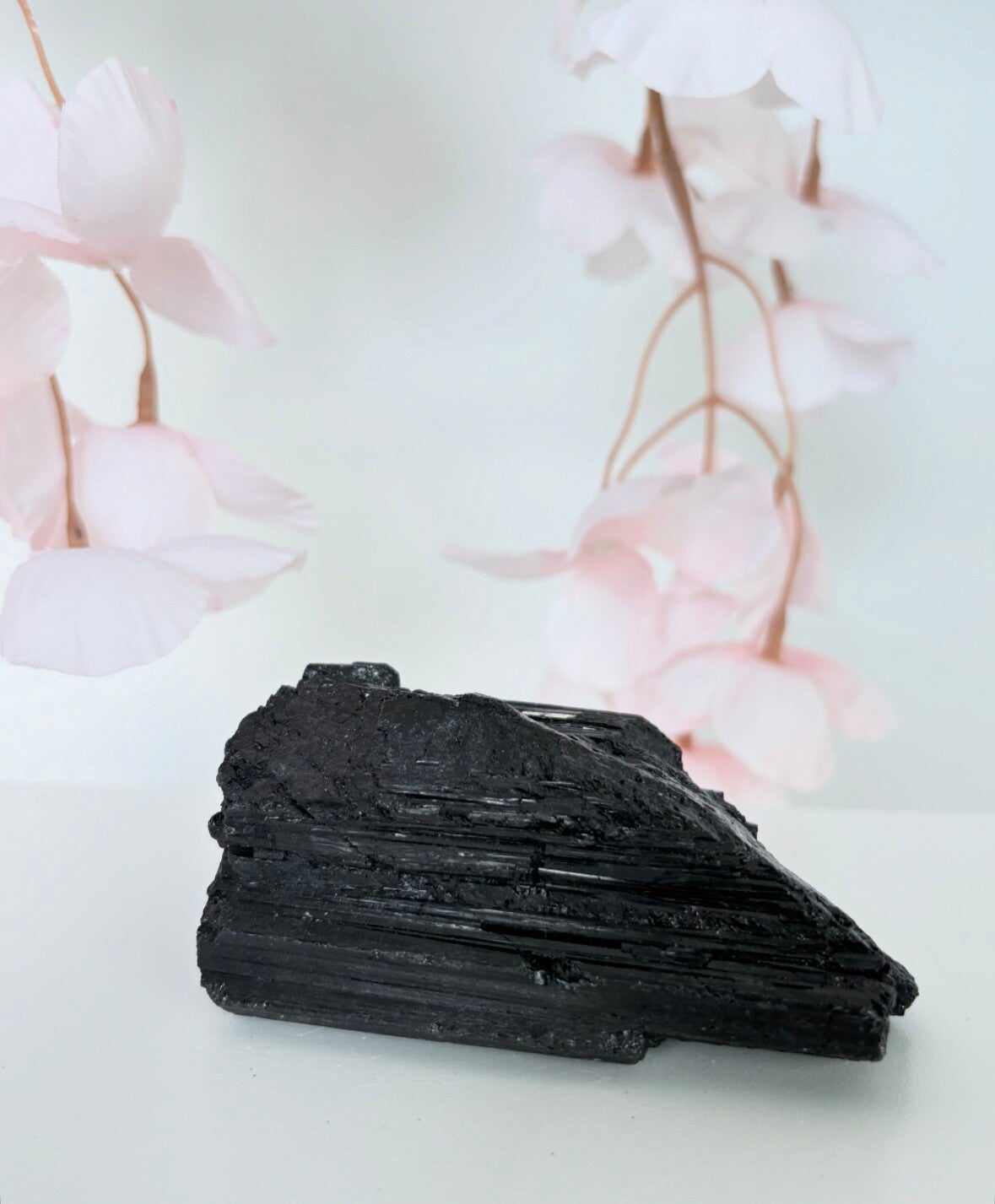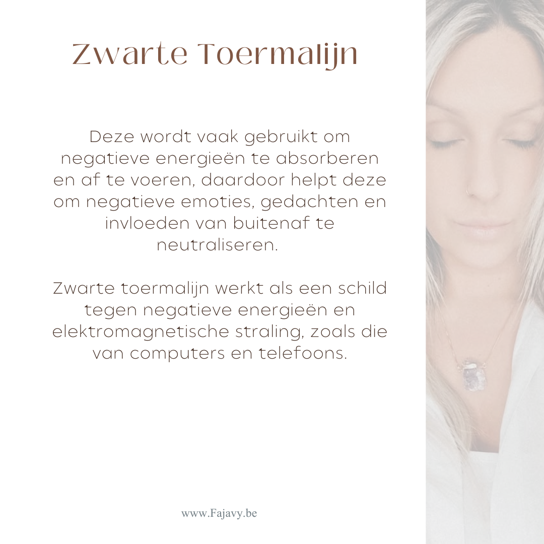 Zwarte toermalijn werkt als een schild tegen negatieve energieën en elektromagnetische straling, zoals die van computers en telefoons.