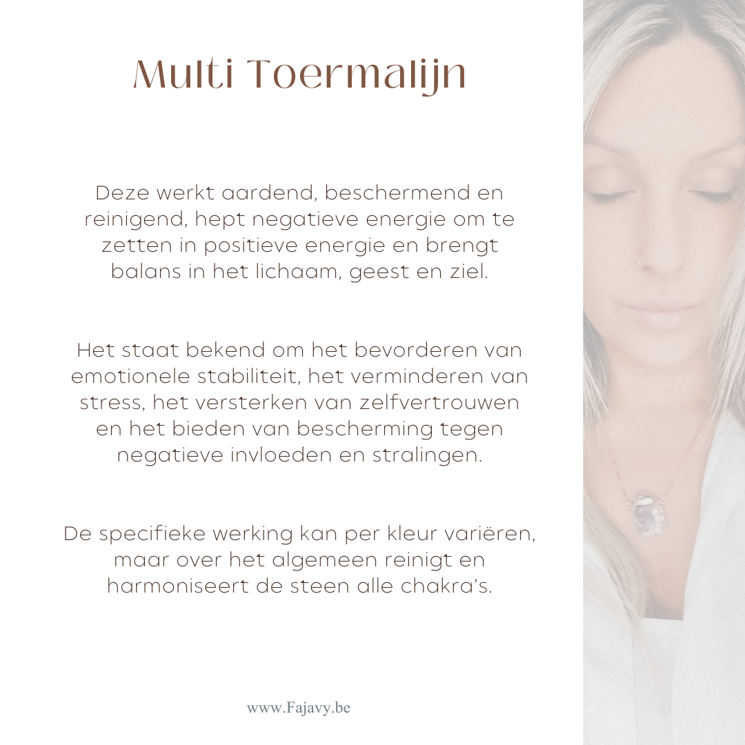 De specifieke werking kan per kleur variëren, maar over het algemeen reinigt en harmoniseert de steen alle chakra’s.
