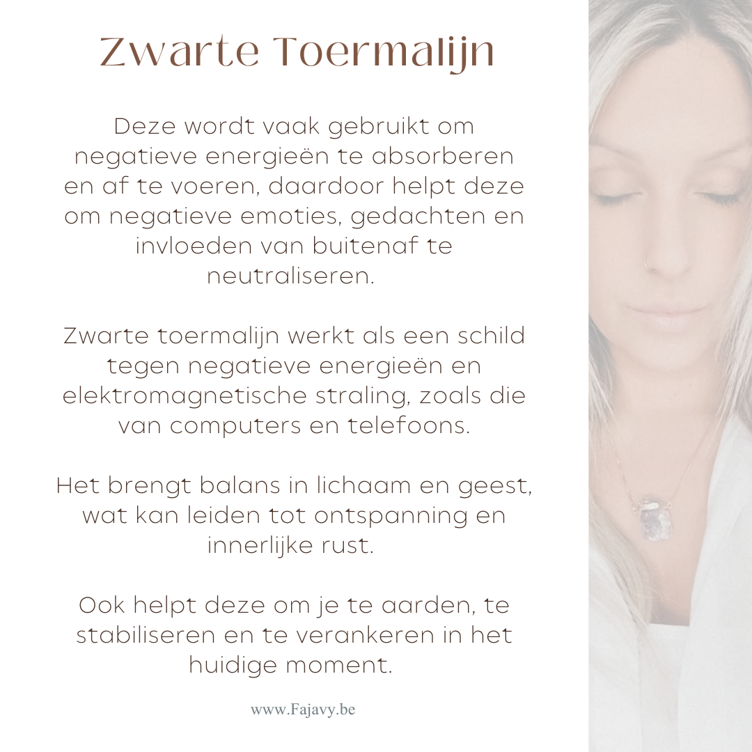 Zwarte toermalijn werkt als een schild tegen negatieve energieën en elektromagnetische straling, zoals die van computers en telefoons.