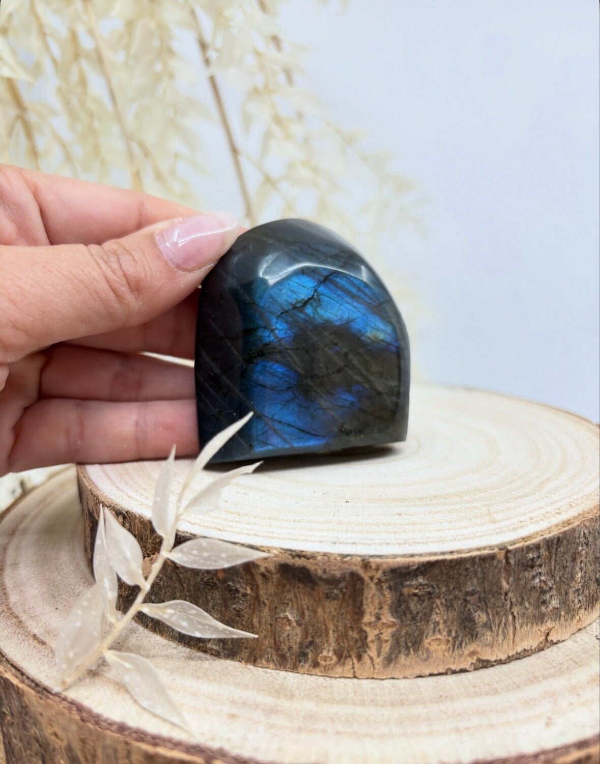 Labradoriet maakt creatief, speels, vrolijk en creatief, dit kristal geeft je zelfvertrouwen en vermindert angsten.