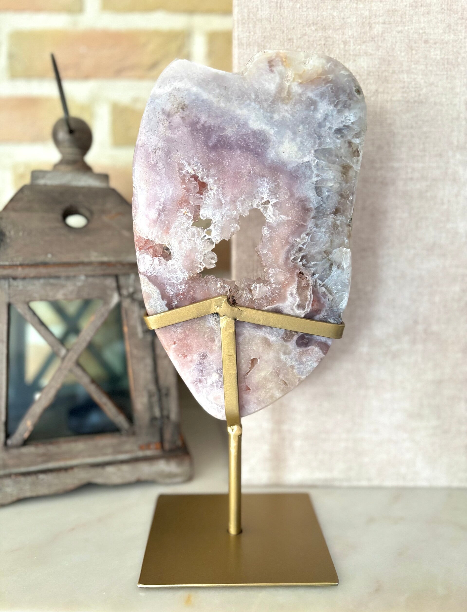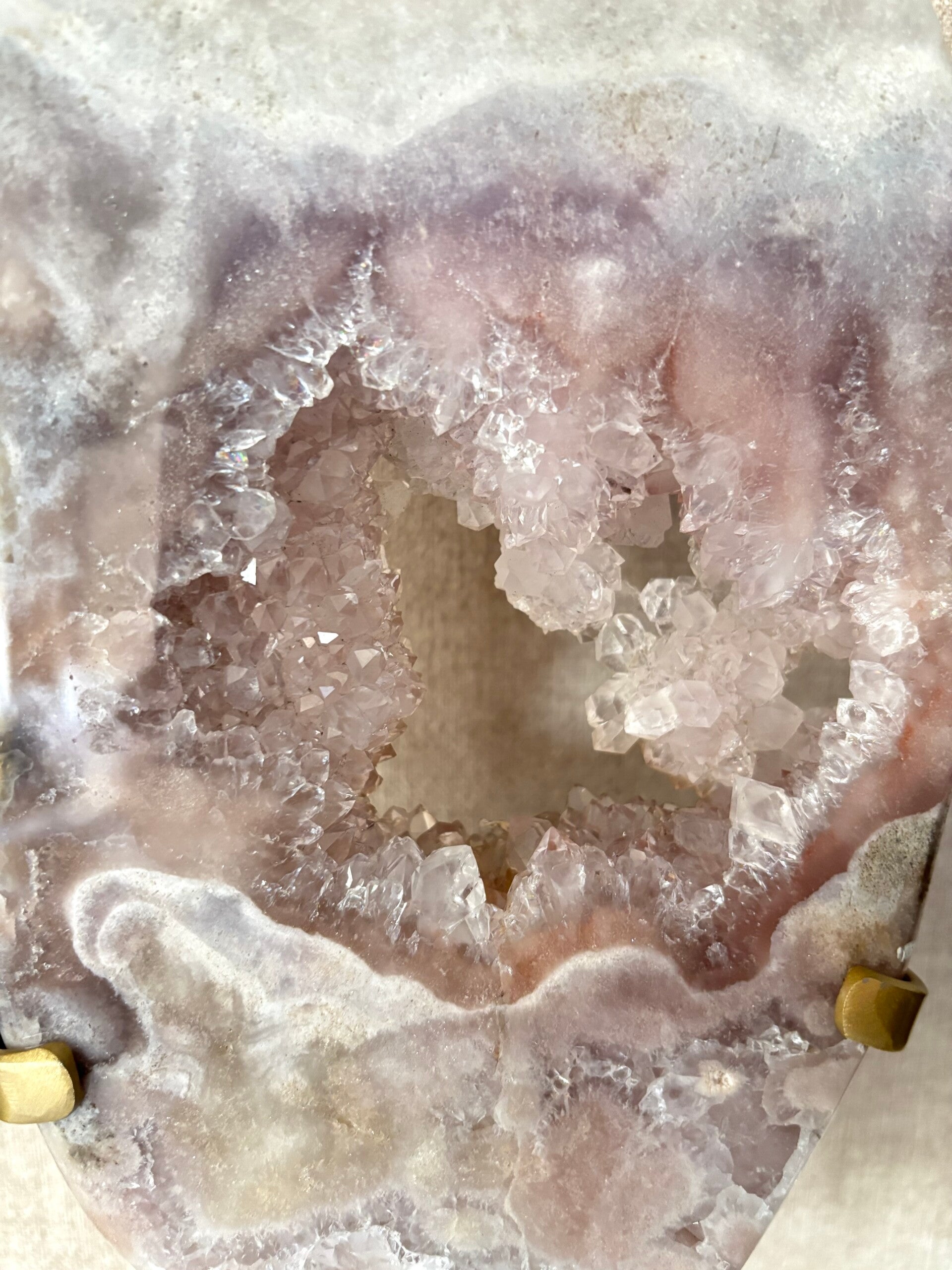 Er is een doorkijk in ongeveer het midden van de Roze Amethist ook is deze volledig gepolijst.