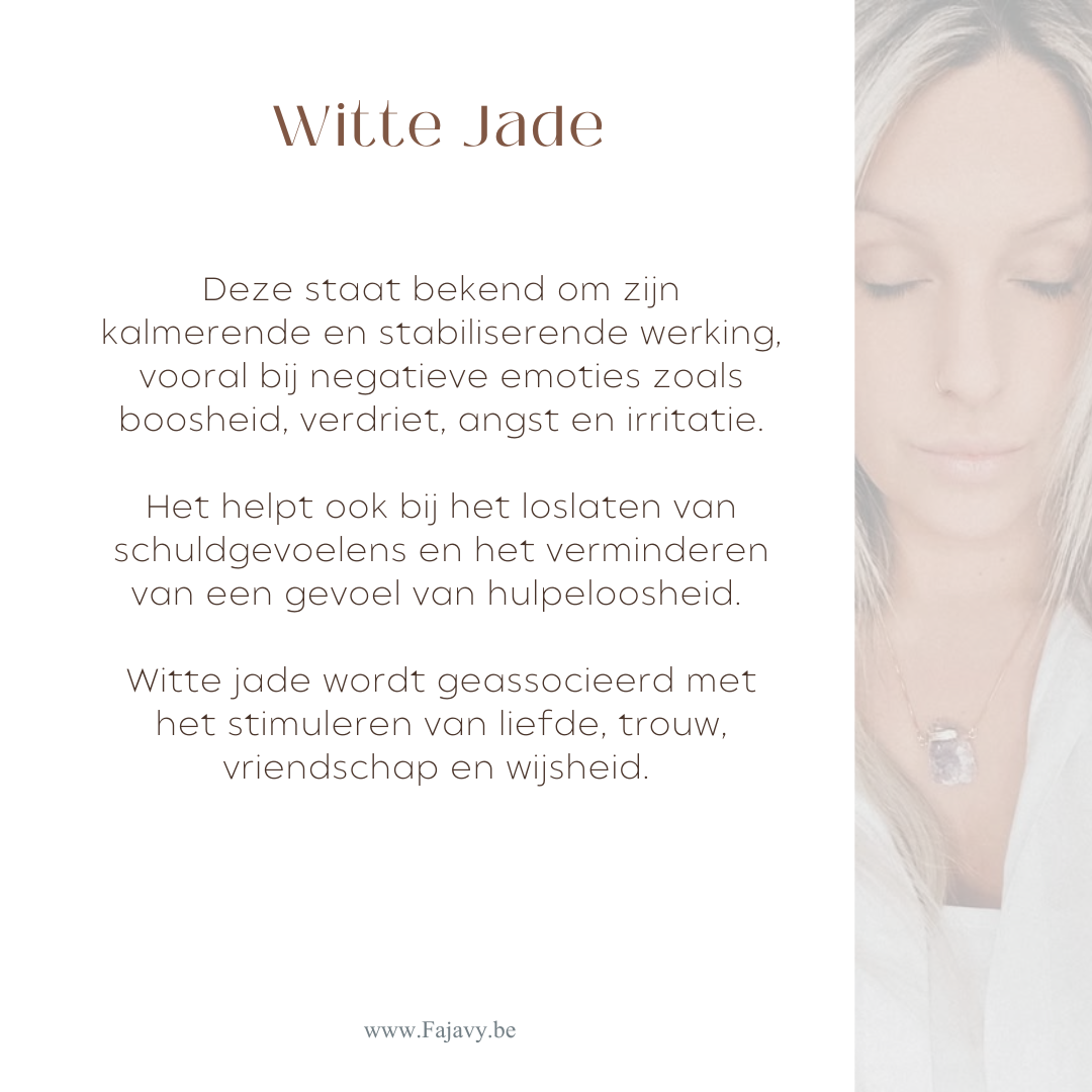 Witte jade wordt geassocieerd met het stimuleren van liefde, trouw, vriendschap en wijsheid.